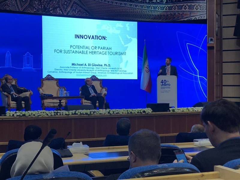 Museum Director Michael A. Di Giovine gave the keynote address “Innovation: Potential or Pariah for Sustainable Heritage Tourism” at the United Nations World Tourism Organization’s 40th Plenary Meeting of Affiliate Members in Hamedan, Iran, November 12, 2018. An expert on pilgrimage and heritage, Di Giovine also ran a workshop with Dr. Mohamad Sharifi, Isfahan University, on religious tourism for Iranian and international attendees.