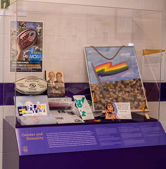 As a Normal School, West Chester’s student population always included a significant number of women, but society at the time did not treat gender and sexuality equitably. As society has become more progressive, and WCU’s community has grown and diversified, the university has become more inclusive; today, 60% of the study body identify as women. Thanks to visionary leadership and collaboration among students, faculty, administration and guests from the community, the university is working towards equity in the treatment of women, people of all gender identities and sexualities, and under-represented groups.
