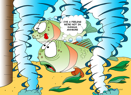 It is a turbulent world that we live in. This goes for fish as is shown in this cartoon