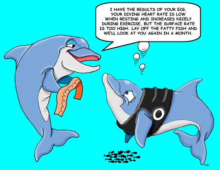 If you have ever had a cardiac stress test, you can sympathize with the dolphin here.