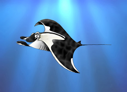 Inspired by work on manta ray swimming. The lighting effect on the manta's back was done by Anton van Heldon, who worked on marine mammals for the Museum of New Zealand (Te Papa Tongarewa).