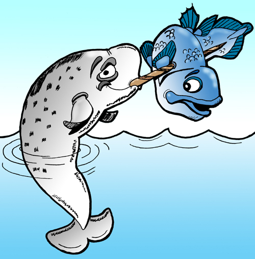 For the 2010 Anatomy and Function of Marine Vertebrates class T-shirt, the class wanted a narwhal impaling a coelacanth.