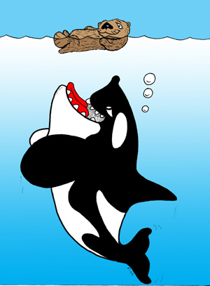 The idea for this cartoon came from reports that orcas were feeding on sea otters in Alaska as their normal prey species had dwindled in population.