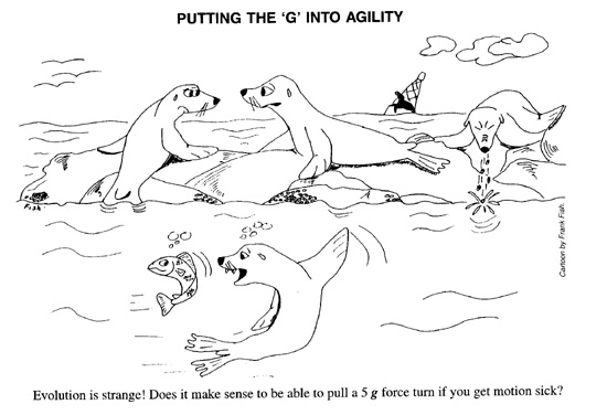 This cartoon was my first officially published cartoon, which appeared in the 2003 Journal of Experimental Biology 206(3) issue. It was based on my research on the maneuverability of sea lions. Compared to other marine mammals, sea lions have a morphology that can promote greater instability and thus greater turning performance.