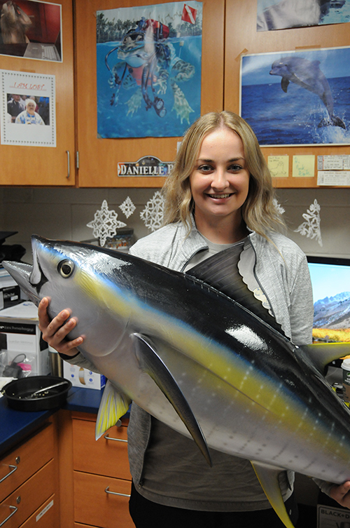 Abigail Downs is a senior, who started in the lab the summer of 2018. She is going to continue in the graduate accelerated program. This summer she is working on the kinematics of tuna.