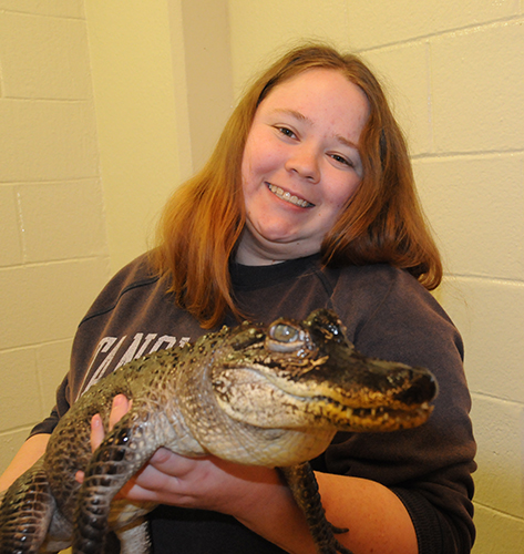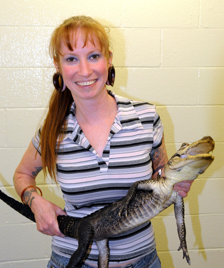 Jill Hammill (2013) was a graduate student, who was working on the morphology of the flippers of harbor seals. Above she is shown holding Wally the lab alligator.