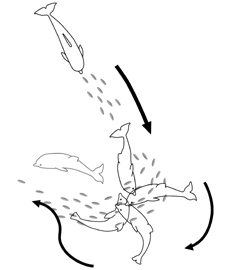 Jennifer Maresh analyzed the turning maneuvers of bottlenose dolphins (Tursiops truncatus) foraging on fish in Sarasota Bay, Florida. The worked was performed in cooperation with Douglas Nowacek of Florida State University, and Stephanie Nowacek and Randall Wells of the Mote Marine Laboratory. The foraging movements of the dolphins were videotaped from overhead using a remotely-controlled camera suspended from a helium-filled aerostat, which was tethered to an observation vessel. Dolphins could capture fish by moving the rostrum through small radius turns (mean- 0.20 body lengths; maximum- 0.08 body lengths) at a mean rate of turn of 561.6 deg/sec (maximum- 1,372.0 deg/sec). During the maneuver, dolphins rolled 90 degrees onto their side and flexed the body ventrally.