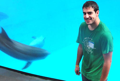 Will Gough graduated from Cornell University (2014) in Animal Science and was a graduate student completing his Master's Thesis on the mechanical properties of the Cetacean tail fluke. Will served as a TA at the Shoals Marine Laboratory for the Anatomy and Function of Marine Vertebrates course over the past two years. Above, Will learned that when collecting data on dolphin swimming, the animals will amuse themselves by splashing researchers who get too close to the tank. Will completed his Master's thesis in 2017 on the structure and architecture of collagen fiber in the flukes of cetaceans. He is currently working on his Ph.D. with Jeremy Goldbogen at Stanford University.