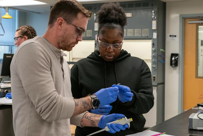The mission of the B.S. Chemistry-Biology curriculum in the Department of Chemistry at West Chester University of PA is to cultivate professionals who have acquired a sound combination of fundamental chemical knowledge, laboratory skills, communications skills, and ethical principles & practices. Graduates will be well prepared to seek admission to schools of medicine, dentistry, or veterinary medicine as well as schools of optometry, podiatry, chiropractic and physical therapy, and physician assistant studies. They will also be able to pursue a career in chemistry, biochemistry, and molecular biology.