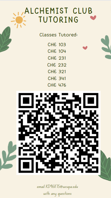The Alchemist Club is an American Chemical Society affiliated club for the West Chester Department of Chemistry. It provides an environment for chemistry students - or students with an interest in chemistry - to communicate, study, and find opportunities among each other. The club works to improve the connections between students, their fellow peers, and their faculty for academic and motivational support. Apart from the biweekly meetings, there are plenty of events throughout the semester. This includes regular bake sales, field trips, and the annual Semi-Formal Dinner in the spring - complete with a theme, dinner, and dancing.