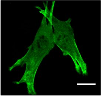 GFP-transfected myoblast cell with a multiphoton laser