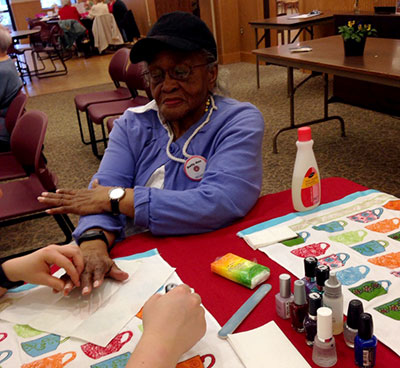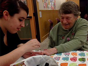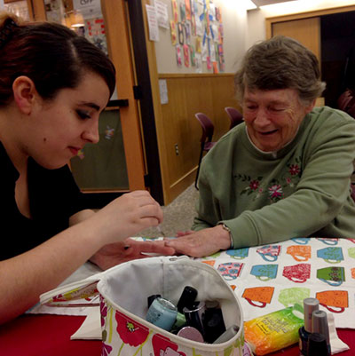 Students held a day of pampering for older adults residents of West Chester, integrating intergenerational communication and participation.
