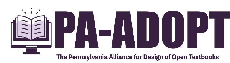 The Pennsylvania Alliance for Design of Open Textbooks (PA-ADOPT) is made up of four participating institutions from Pennsylvania State System of Higher Education (PASSHE) that are all regional and primarily undergraduate institutions, situated in Southeastern Pennsylvania.