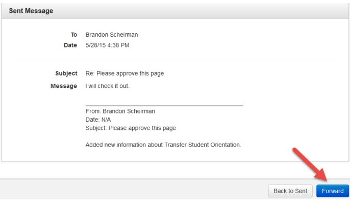 Users can forward previously sent messages to other users and groups.