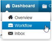 Workflow can be found in the global navigation bar at Dashboard > Workflow or by clicking the Workflow link near your name on the Dashboard page.